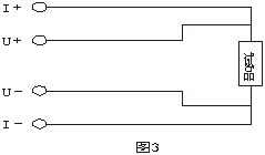 U+、I+為一套接線(xiàn)夾子,U-、I-為另一套接線(xiàn)夾子,接線(xiàn)時(shí)必須將U+夾在I+的內(nèi)側(cè),U-夾在I-的內(nèi)側(cè)。線(xiàn)徑大的為電流,線(xiàn)徑小的為電壓。