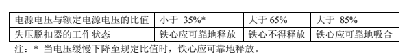 表 10.0.12-2 附裝失壓脫扣器的脫扣試驗
