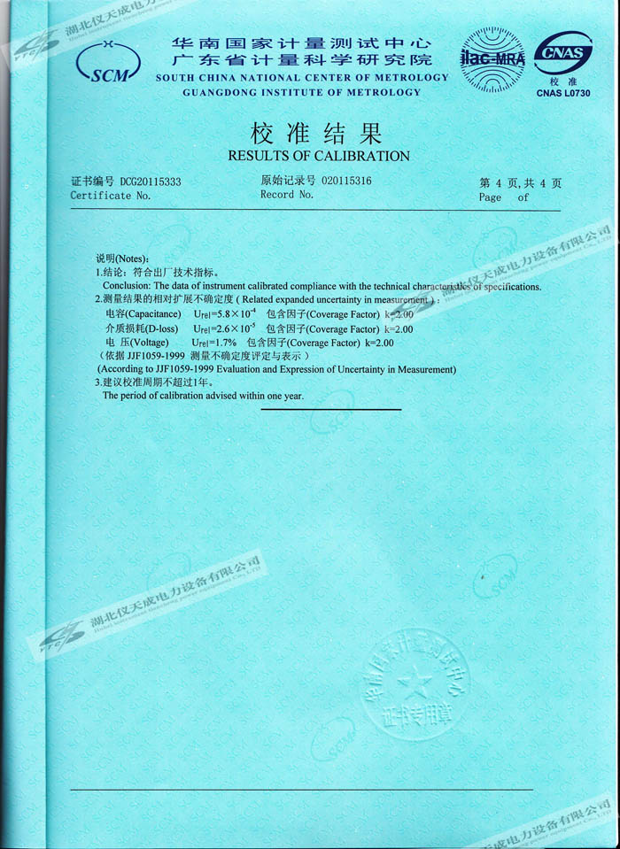 轉(zhuǎn)載:"YTC309抗干擾介質(zhì)損耗測(cè)試儀的資質(zhì)證書" 請(qǐng)注明來源于儀天成電力。 更多技術(shù)問題請(qǐng)致電儀天成電力客戶服務(wù):027-87876585,技術(shù)部專線:027-87876585,在線客服:719388481