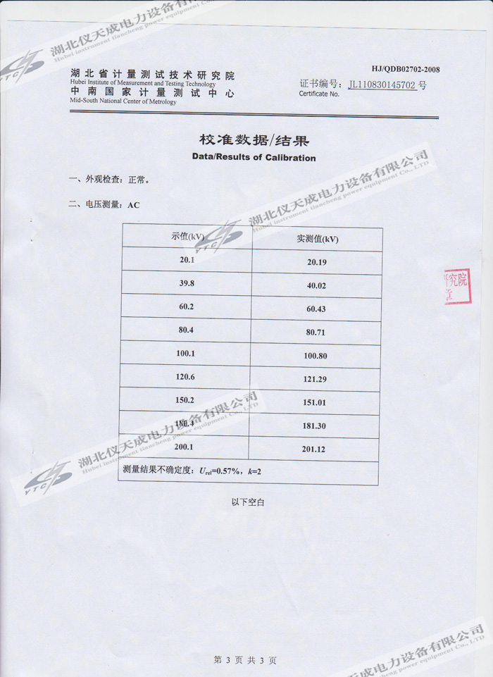 轉(zhuǎn)載:"YTC850-810kVA/270kV/45kV變頻串聯(lián)諧振試驗(yàn)裝置的資質(zhì)證書(shū)" 請(qǐng)注明來(lái)源于儀天成電力。 更多技術(shù)問(wèn)題請(qǐng)致電儀天成電力客戶服務(wù):027-87876585,技術(shù)部專線:027-87876585,在線客服: