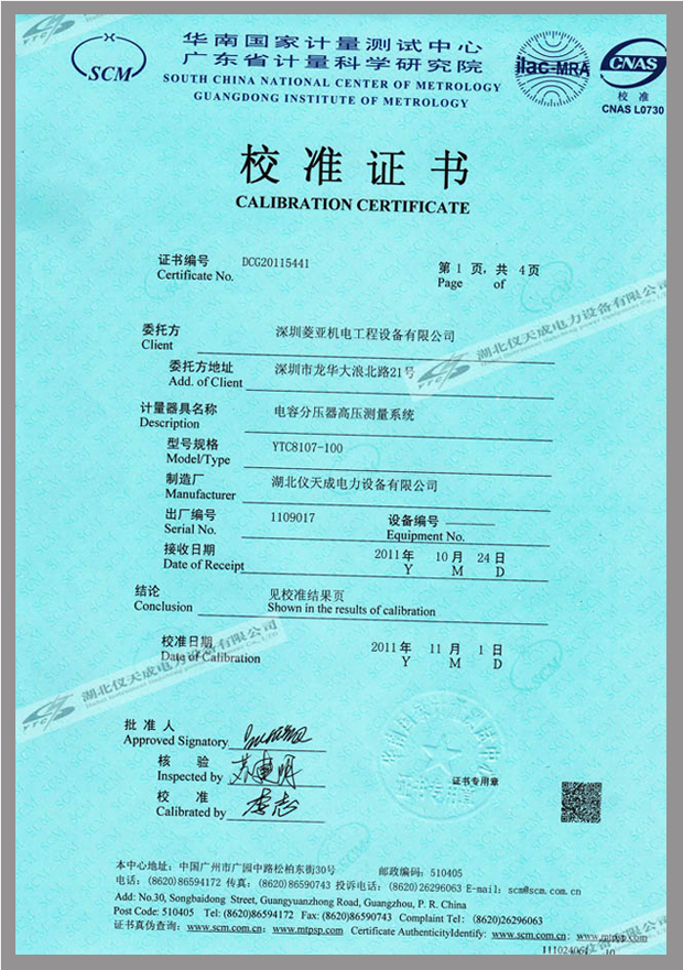 轉(zhuǎn)載:"YTC8107系列電容分壓器高壓測量系統(tǒng)鑒定證書" 請注明來源于儀天成電力。 更多技術(shù)問題請致電儀天成電力客戶服務:027-87876585,技術(shù)部專線:027-87876585,在線客服: